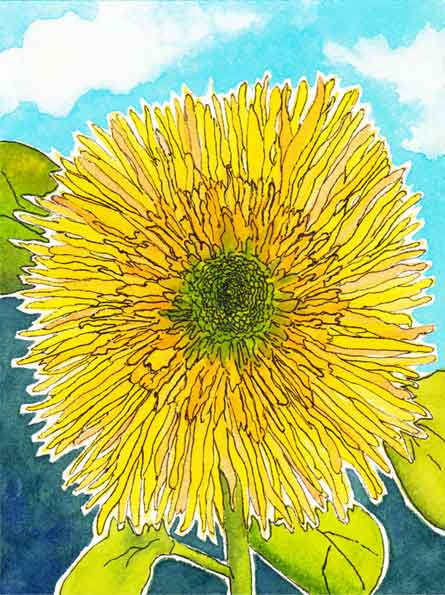 Sunflower. 4.5 x 6 watercolor and pen. 2015 Sheila Delgado