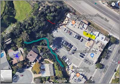 Yellow-Salon, Blue-path to 7-11, Red-steep hill, star-home.