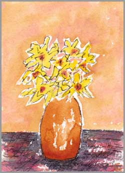I knew I was going to count this as one of my daily pieces. But really it was more for fun, and to play. I made a few mistakes. I should have used darker colors for the blooms. I chose two shades of blue, shiraz, yellow, a flesh tone and green gold. There isn’t enough contrast with some of the colors and the gesso. I also need to expand my floral marking alphabet. Maybe I should have looked at zentangles for ideas.