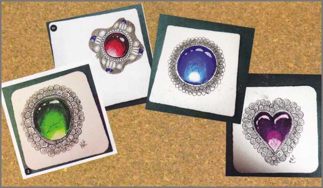 My good friend Kat surprised me with her Gems. I received her card as an official LYA postcard. Didn’t think I would get another as a side swap. This LYA has been full of surprises! Kat is a Certified Zentangle Teacher. She tells me these look better in person, but I think they look pretty real on the card. Lots of depth in the colors! Thanks Kat for surprising me with your colorful, wonderful art!