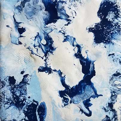 Pour #2, acrylic on 4 x 4 gallery wrapped canvas. 2017 Sheila Delgado