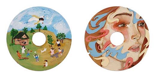 Miss You Much, Art On 45.  7 inches, acrylic and pen on vinyl. © 2018 Sheila Delgado.