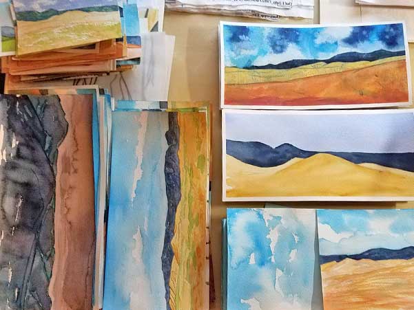 It looks like a stack of Easter eggs to me. Messy experimental cacti. I thought it might be good for a laugh. I used leftover gouache. I added one color at a time and thought I could go back and blend. But they did not want to cooperate. The few areas where blending occurred, started to get muddy. Next time I will use multiple brushes and blend while the paint is wet.