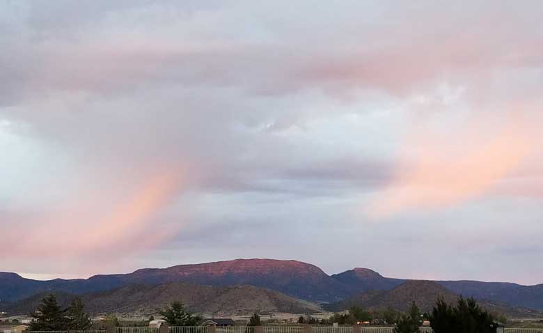 On the road at 5:30 am, I saw this. Snow on the hills. On May 23rd! Halfway to Phoenix, it was sunny and warm, and the sky was clear.