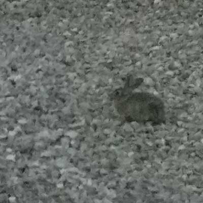 It’s been a long time since I have spotted a rabbit. This little one was tiny. Just before dark, he was hanging out. A couple came walking by, they were on the other side of the street. As soon as he heard them, he crouched down. Like a cat stalking its prey. He tucked in his ears and got as low as he possibly could. He became one with the earth. Ha-ha.