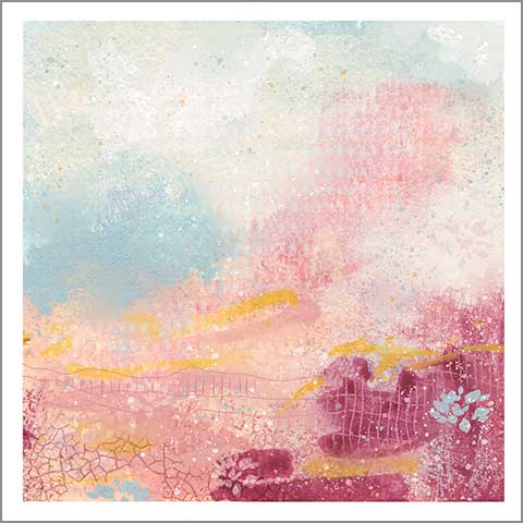 9-26-22-SMDelgado-White ← Previous Next → Day 26, Misty Mesa Morn. 8 x 8 inch. Acrylics on paper, & digital collage. © 2022 Sheila Delgado.